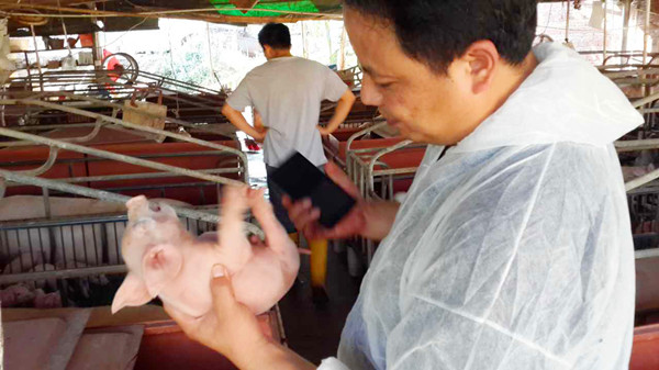 郭金權(quán)老師對(duì)產(chǎn)房仔豬進(jìn)行視檢