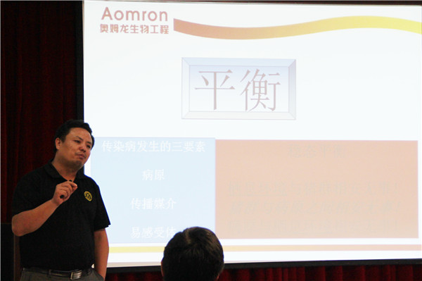 此次會(huì)議特邀請(qǐng)到了原解放軍獸醫(yī)大學(xué)預(yù)防獸醫(yī)學(xué)博士、軍事醫(yī)學(xué)科學(xué)院藥理學(xué)博士、美國(guó)明尼蘇達(dá)州立大學(xué)醫(yī)學(xué)研究院博士后陶增思博士。陶增思博士為銷售精英技術(shù)分享了《豬病發(fā)生與微生物制劑》,陶博士以淵博的知識(shí)、豐富的經(jīng)驗(yàn)給大家上了受益匪淺的一堂課。