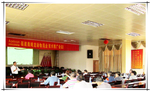 2012年4月15日,公司技術(shù)總監(jiān)郭金權(quán)博士在新羅區(qū)大池鎮(zhèn)向養(yǎng)殖戶介紹在養(yǎng)殖中如何做好疾病預防與治療,針對不同的病情如何合理、有效的使用產(chǎn)品。