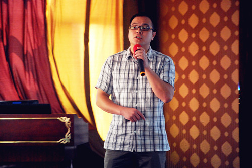 圖四:林承佺經(jīng)理講課 《美系種豬育種與提高母豬生產(chǎn)性能關(guān)鍵技術(shù)》