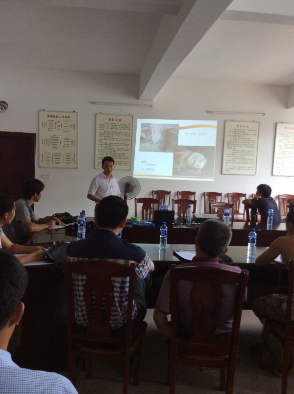 2014年7月19日,福建奧姆龍動物藥業(yè)有限公司福建大區(qū)團隊在龍巖永定湖山開展《夏季母豬的產(chǎn)后消炎與驅蟲》技術交流會議,為養(yǎng)殖戶提供專業(yè)的技術服務指導。盡管天氣十分炎熱,與會人數(shù)還是一下就超過了原本的安排,不得不臨時加座,才能滿足養(yǎng)殖朋友的熱情。