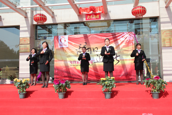 這天早上的天氣格外晴朗,公司前的廣場上張燈結彩、花團錦簇、彩旗飄飄。伴隨著正午明媚的春光,“辭舊迎新”奧姆龍年終員工家屬答謝宴溫情開幕。