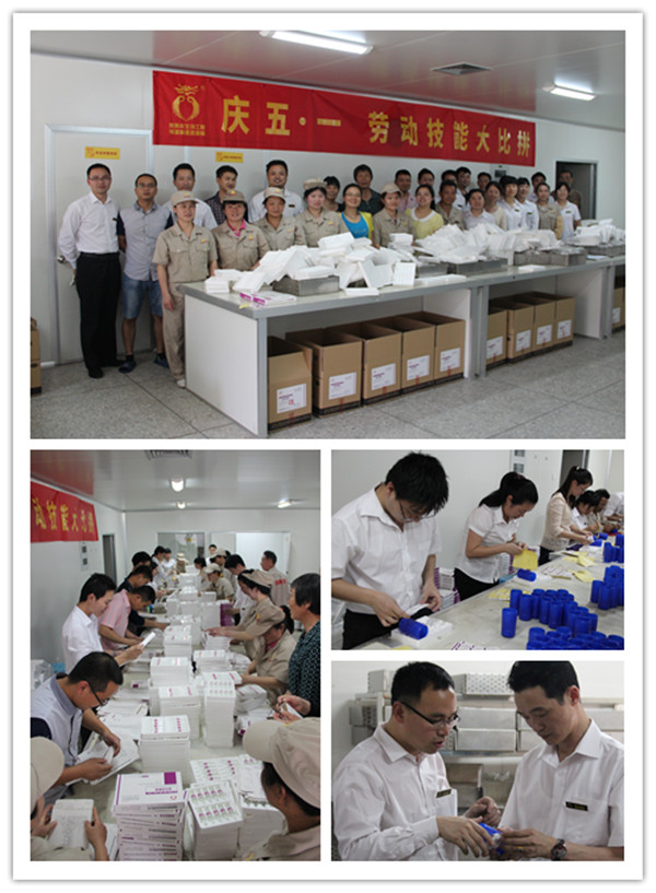 2015年4月30日,為迎接五一國際勞動節(jié),奧姆龍生物工程有限公司組織全體員工在生產(chǎn)部外包車間舉行了趣味十足的生產(chǎn)技能比賽。通過三項包裝比賽,分別產(chǎn)生了生產(chǎn)、后勤、質(zhì)量三個組別的前三名。董事長林振雁全場參與,并為獲獎員工頒獎。在隨后的總結(jié)會上他表示,希望通過舉辦這樣一個有意義的活動,讓大家參與到生產(chǎn)第一線的工作中來。讓我們在實踐中感受到嚴(yán)格執(zhí)行企業(yè)標(biāo)準(zhǔn),嚴(yán)把生產(chǎn)質(zhì)量關(guān),把合格的產(chǎn)品交到客戶手中,是我們每一個奧姆龍人的使命。