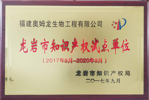 龍巖市知識(shí)產(chǎn)權(quán)局授予福建奧姆龍生物工程有限公司:龍巖市知識(shí)產(chǎn)權(quán)試點(diǎn)單位