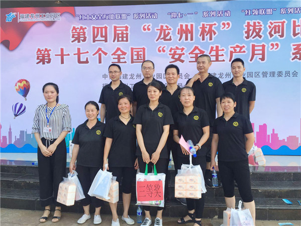 為豐富職工的精神文化生活,增強(qiáng)團(tuán)隊(duì)凝聚力。我司于2018年6月28日上午組隊(duì)參加了由福建龍州工業(yè)園區(qū)舉辦的第四屆“龍州杯”職工拔河比賽。