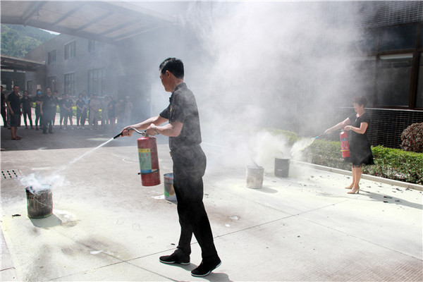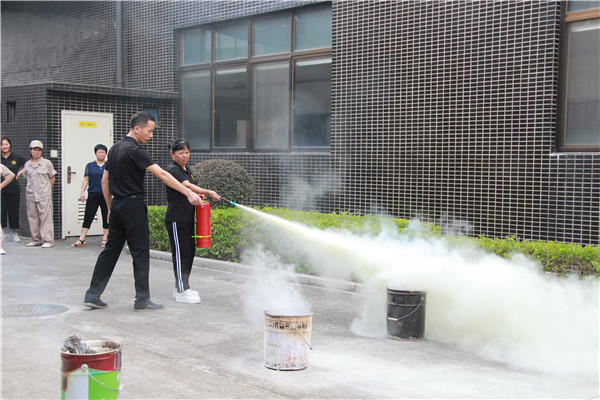 接下來(lái)由公司安全員王育生講解了干粉滅火器及水劑滅火器的工作原理及使用方法,并且介紹了不同介質(zhì)燃燒時(shí)應(yīng)如何正確選擇滅火器的類型。讓員工使用滅火器對(duì)現(xiàn)場(chǎng)小型模擬火點(diǎn)進(jìn)行滅火,親身感受在火場(chǎng)應(yīng)該如何正確使用消防設(shè)備。
