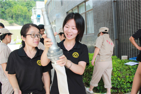 滅火器實(shí)操演練結(jié)束后,公司安全員開(kāi)始進(jìn)行消防栓使用過(guò)程講解。消防栓滅火主要應(yīng)對(duì)大型火點(diǎn),員工們按兩人一組互相協(xié)作,進(jìn)行消防栓的拉管接管等實(shí)操演練。
