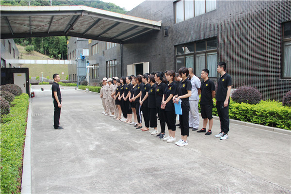 當(dāng)天上午08:40全體員工集合在廠區(qū)倉(cāng)庫(kù)一側(cè),首先由董事長(zhǎng)林振雁強(qiáng)調(diào)了安全生產(chǎn)的重要性及本次消防演練、掌握火災(zāi)逃生技能的必要性。