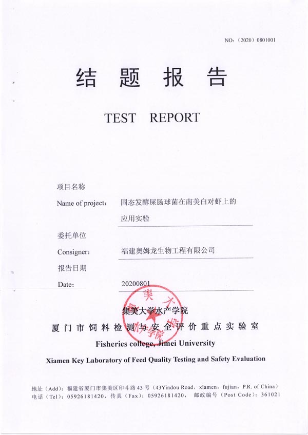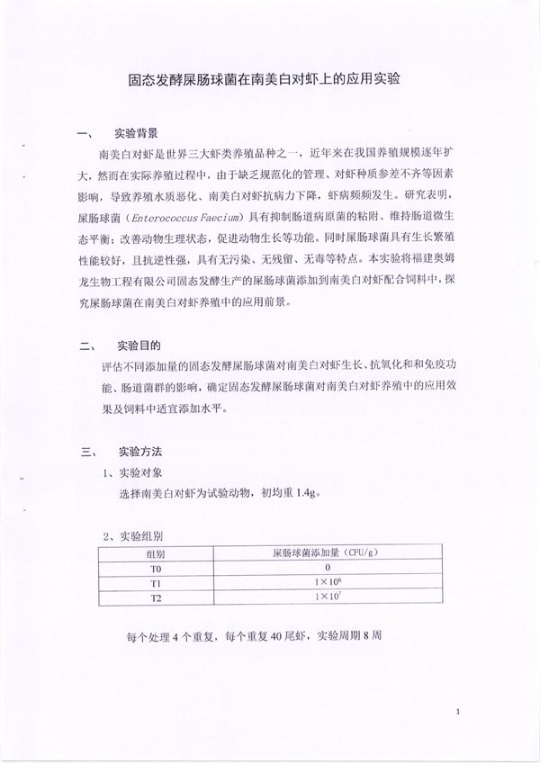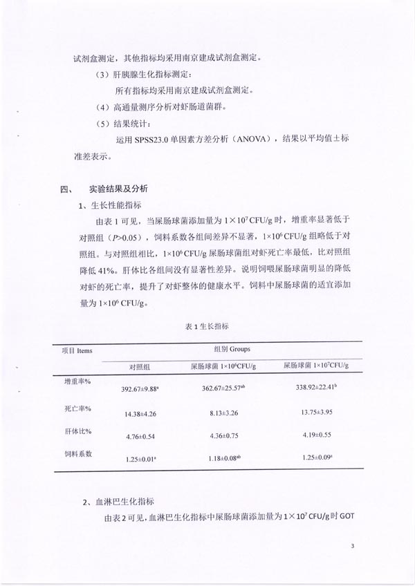 屎腸球菌在南美白對蝦中的應(yīng)用結(jié)題報告
