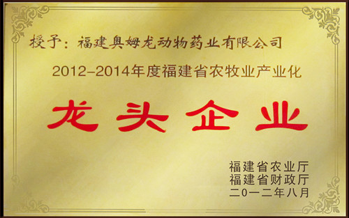 根據(jù)省政府《關于進一步加快農業(yè)產(chǎn)業(yè)化龍頭企業(yè)發(fā)展的若干意見》、省農業(yè)廳與財政廳聯(lián)合印發(fā)的《福建省農牧業(yè)產(chǎn)業(yè)化龍頭企業(yè)認定和管理辦法》,并突出“特色、高新、綠色”特點,經(jīng)逐級推薦、專家評審、網(wǎng)上公示,確定福建奧姆龍動物藥業(yè)有限公司為2012-2014年度福建省農牧業(yè)產(chǎn)業(yè)化龍頭企業(yè)。