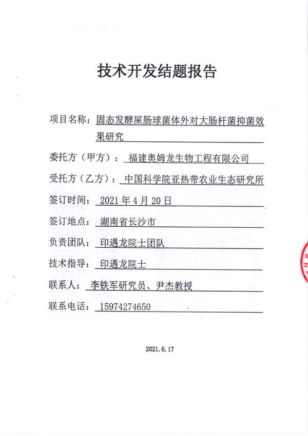鑒于屎腸球菌的抑菌作用,我司于2021年4月與中國科學(xué)院亞熱帶農(nóng)業(yè)生態(tài)研究所簽訂協(xié)議,對我司生產(chǎn)的固態(tài)發(fā)酵屎腸球菌體外對大腸桿菌抑菌效果進行研究。