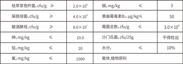 【原料組成】枯草芽孢桿菌、屎腸球菌、釀酒酵母、載體植物原料。