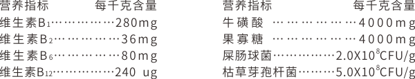【原料組成】屎腸球菌、枯草芽孢桿菌、復(fù)合B族維生素、牛磺酸、果寡糖、純化水等。