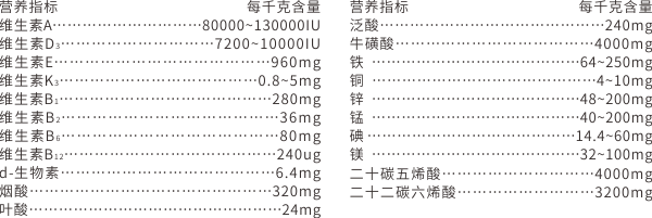 【原料組成】?;撬帷⑸詈t~油、復(fù)合維生素、復(fù)合微量元素、純化水等。