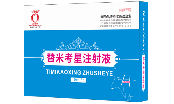 藥動學 皮下注射后吸收迅速,特點是組織穿透力強,分布容積大(大于2L/kg)。肺和乳中濃度高,半衰期可達1~2天,有效血濃度維持時間長。給牛按每 1kg體重10mg皮下注射,1小時內達血藥峰濃度,乳中濃度(大于0.8μg/ml)可維持8~9天。在一次注射后,肺組織3天內仍能維持高于溶血性巴氏桿菌MIC95(3.12ug/ml)的濃度。注射后第3天,肺/血清的替米考星濃度比值約為60∶1。皮下注射后0.5小時乳中濃度高于血藥濃度近50倍,消除半衰期長達33.8小時。